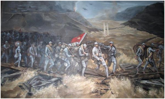 1934年10月,中央主力红军为了摆脱国民党军队的包围追击而退出中央根据地进行长征。[1] 中央红军共进行了380余次战斗,攻占七百多座县城,红军牺牲了营以上干部多达430余人,平均年龄不到30岁,共击溃国民党军数百个团,其间共经过11个省,翻越18座大山,跨过24条大河,走过荒草地,翻过雪山,行程约二万五千里,于1935年10月到达陕北,与陕北红军胜利会师。1936年10月,红军三大主力会师,标志着长征的胜利结束。